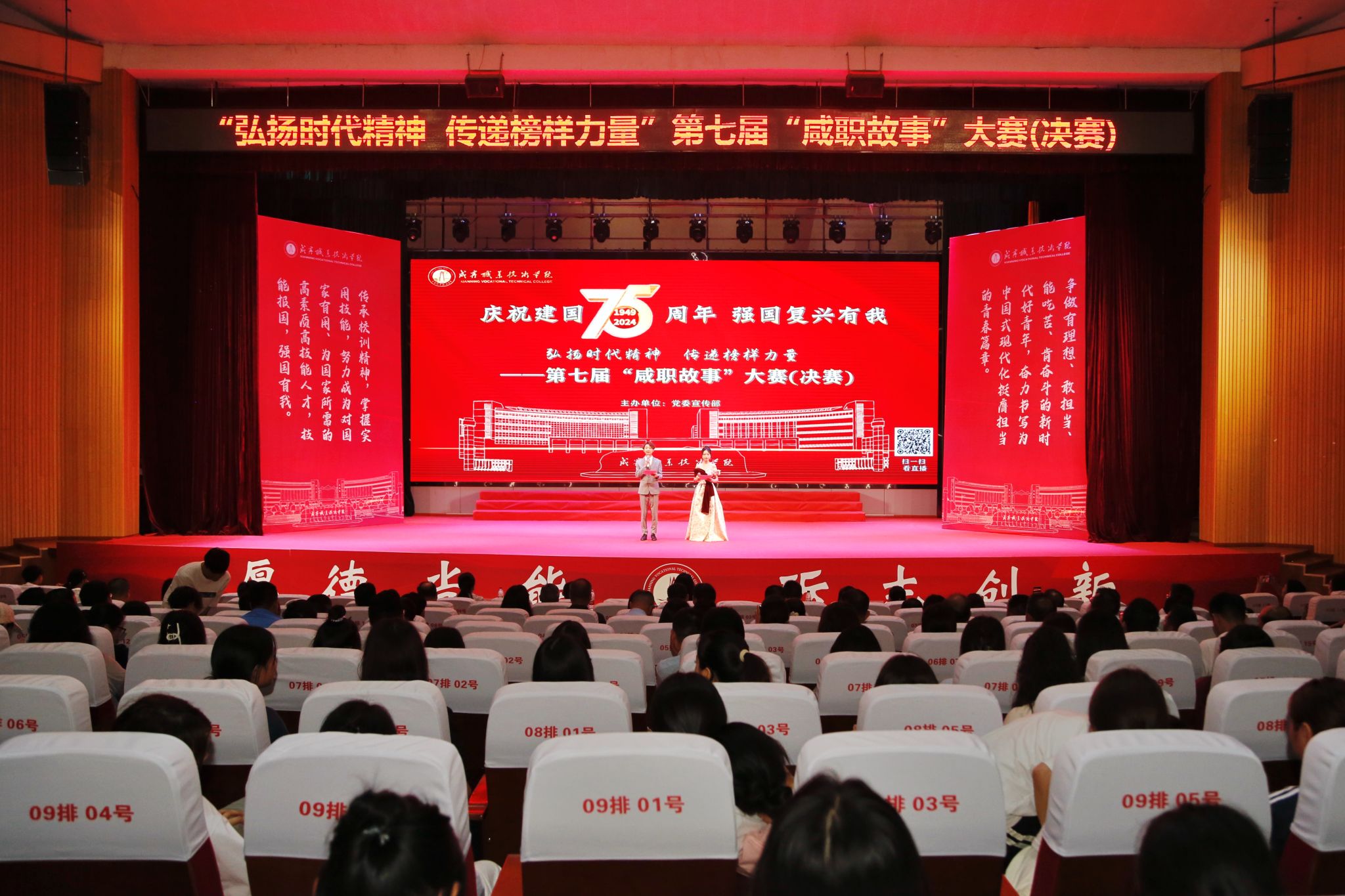 弘扬时代精神,传递榜样力量。6月14日晚,第七届咸职故事大赛决赛在科学会堂隆重举行。校党委书记高焕清,校长陈红卫,党委副书记华先宙,党委委员、组织部长曾志出席活动。