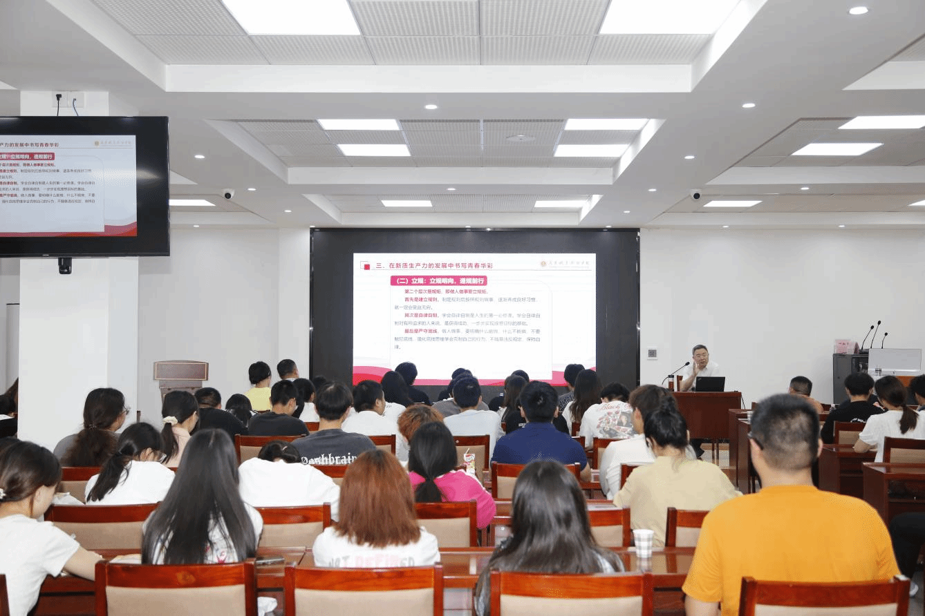 课堂上,陈校长从“新质生产力概述”、“新质生产力对职业和职业教育的影响”、“在新质生产力的发展中书写青春华彩”等三个方面进行授课,并结合行业发展趋势,利用大量现实数据和案例,分析了什么是新质生产力以及新质生产力对职业和职业教育的影响,引导学生提升综合素养,注重全面发展。