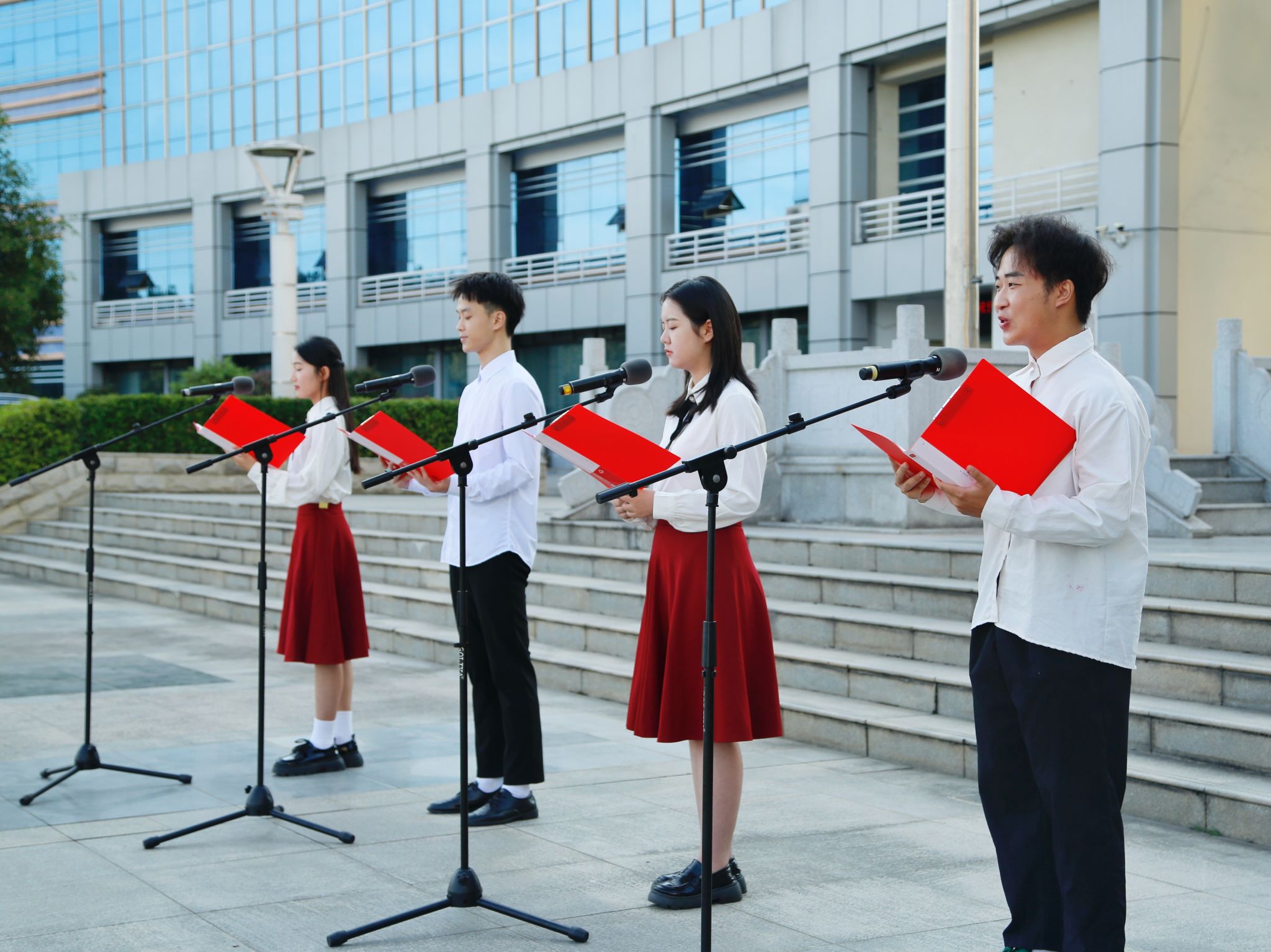 同学们在国旗下朗诵诗歌《读中国》,献礼祖国,对党许下青春的誓言,表达了咸职学子浓厚的爱国之情。全体师生还合唱《歌唱祖国》,表达对祖国母亲的深切祝福。