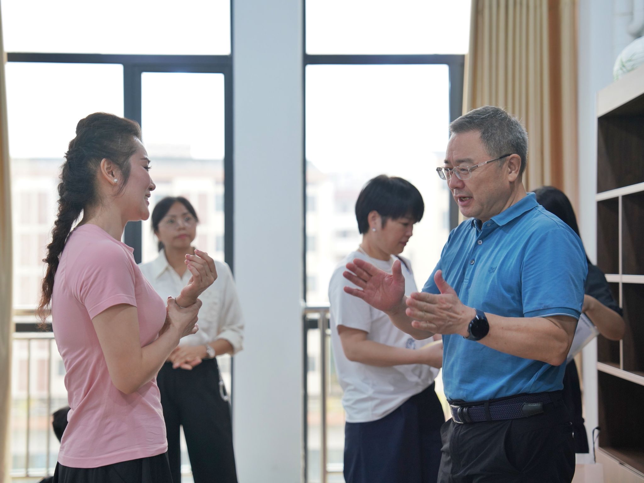 陈红卫课后与张敏老师交流