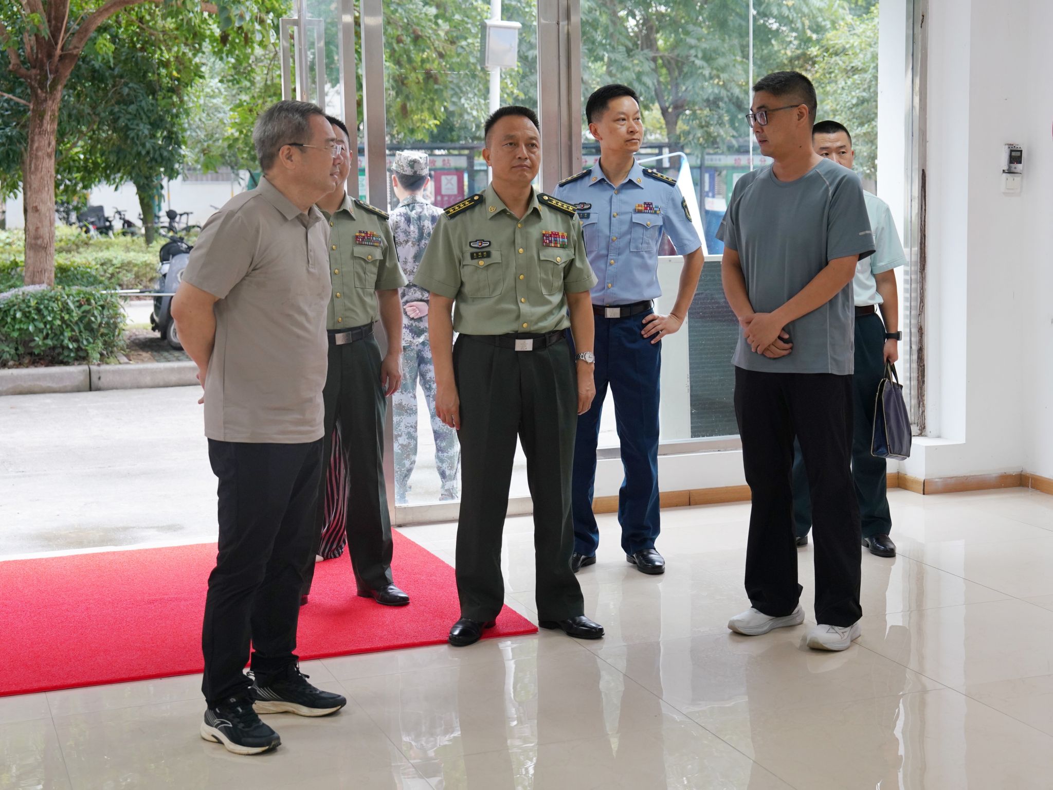 9月10日上午,咸宁军分区政委朱明瑞一行到学校实地调研指导征兵及学生军训工作,学校校长陈红卫,党委委员、宣传部(统战部)部长曾志、学工处处长刘晶、武装部部长尹相如参加调研。