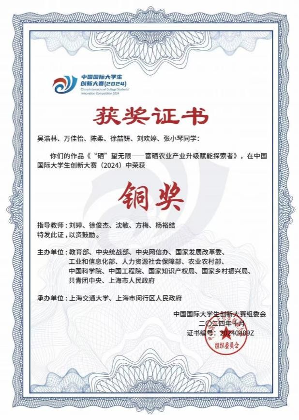 张小琴参与的《“硒”望无限——富硒农业产业升级赋能探索者》项目,在多个重要赛事中屡获殊荣:2024年10月获中国国际大学生创新大赛(2024)铜奖,2025年5月又荣获第八届中华职业教育创新创业大赛二等奖。这个项目与咸宁职业技术学院“一村多名大学生计划”学员吴浩林的创业实践形成了良好互动。吴浩林团队在双溪桥镇杨堡村通过“给作物定制‘营养餐’”,成功实现了在非富硒地区培育富硒农作物的突破。张小琴正是从这样的实践中汲取灵感,将先进的组培技术应用于富硒种苗培育,使作物产量较传统留种提升20%以上。