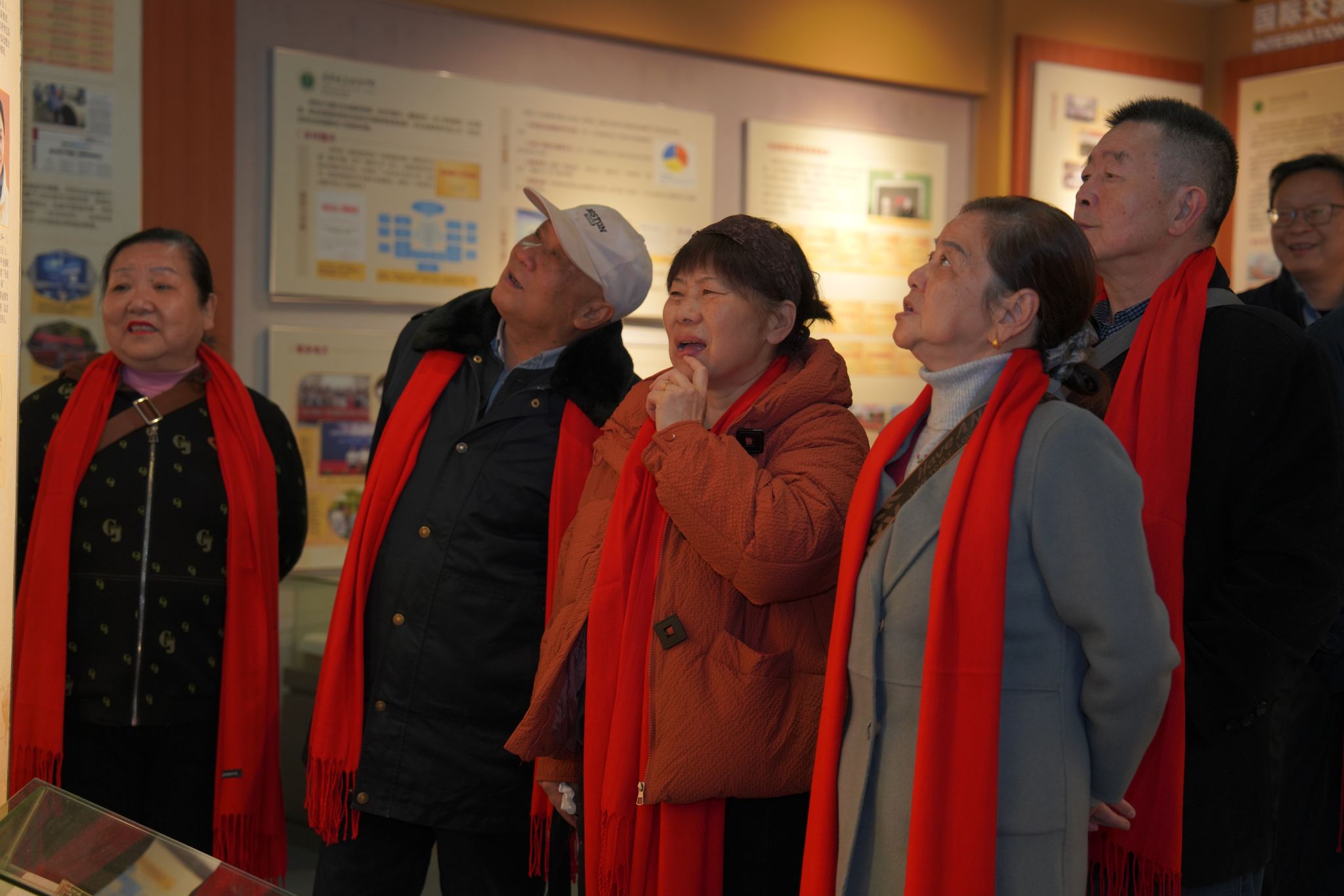 签到后,漫步走过教学楼、操场、林荫道,记忆中的读书声、欢笑声却愈发清晰。从南门缓步至校史馆,在一张张老照片、一段段旧史料中,众人驻足寻找着属于“75级会计2班”的青春痕迹。在北门前,随着相机快门清脆响起,一张跨越半个世纪的“全家福”就此定格。照片里,笑容灿烂,情谊凝聚,这是时光馈赠的最珍贵礼物。