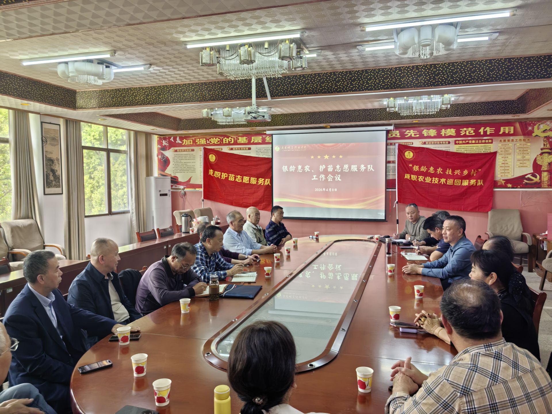 4月8日,咸宁职业技术学院“银龄”志愿服务队工作会议在信息楼三楼会议室召开。党委副书记华先宙出席会议并讲话,李军持、吴高岭等银龄志愿者代表和工会、离退休工作处相关人员参加会议。