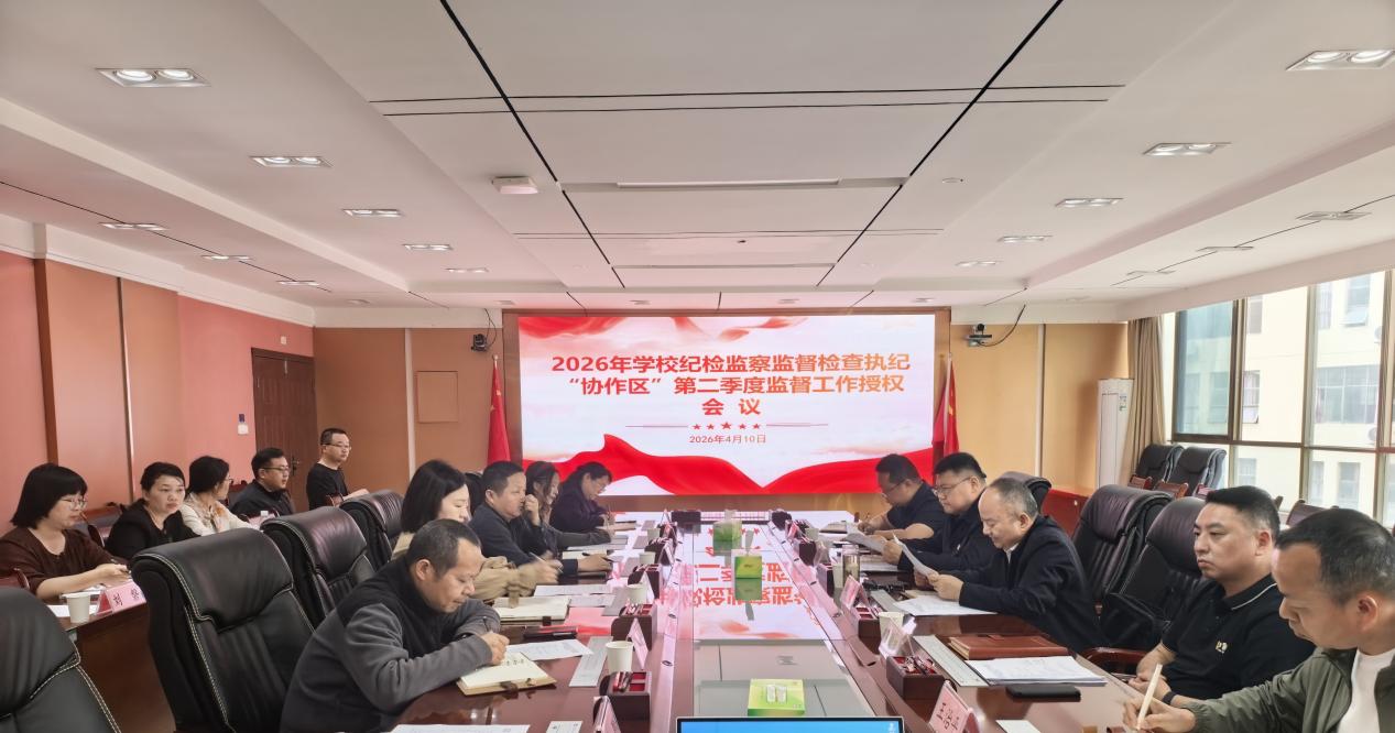 4月10日上午,校纪委、监察专员办公室在厚德楼409召开2026年学校纪检监察监督检查执纪“协作区”第二季度监督工作授权会议,校党委委员、纪委书记、监察专员张兴国同志出席会议并讲话,会议由校纪委副书记、纪监综合室主任吴朝辉主持,校纪委委员出席会议。