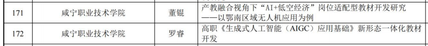 依据《2026年度数字化与人工智能背景下职业教育教学改革及教材建设创新研究项目公示》(信息化教指委〔2026〕15号),我校4个项目顺利获批立项,其中“人工智能赋能高职创新创业通识课新形态教材建设研究——基于‘赛教创’的协同育人实践”获评重点项目,为湖北省高职院校唯一,其余3项为一般项目,研究方向涵盖人工智能通识教育、大学美育、智慧康养专业群课程体系重构等关键领域,进一步夯实了我校在职业教育教学创新研究方面的优势地位。