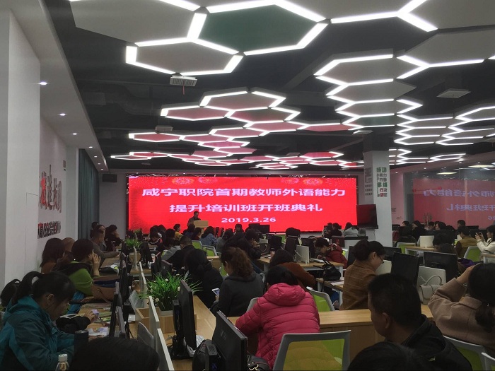 3月26日晚,我校第一期教师外语能力提升培训班开班典礼暨开班第一课在会计实训室虚拟商业社会环境VBSE综合实训室举行。校党委书记王继成,党委委员、组织部(人事处)部长曾志及相关院部处室负责人,第一期培训教师、班主任,英语、日语培训班全体学员参加了典礼。典礼由校长助理陈为民主持。