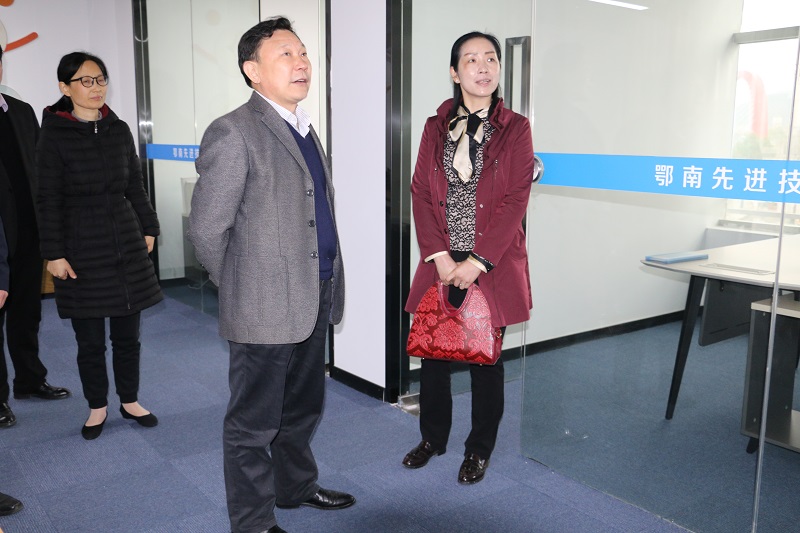图:王继成陪同朱明凤参观鄂南先进技术研究院