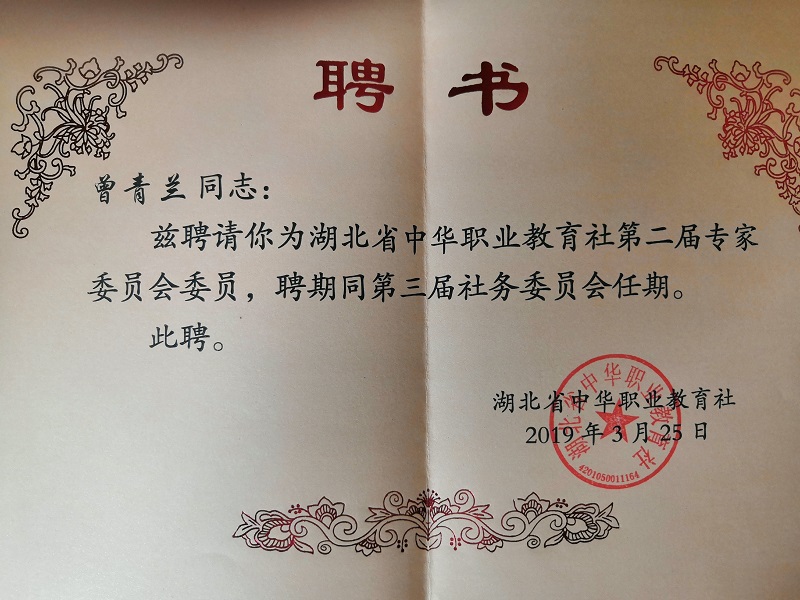 会上宣读了《关于聘请湖北省中华职业教育社第二届专家委员会组成人员的决定》,并向专家代表颁发了聘书。我校副校长方旭教授、生物工程学院曾青兰教授被聘为专家委员会委员。