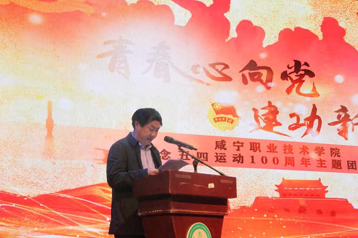会上,党委副书记龚光松发表讲话,他首先向获奖集体和个人表示祝贺,向共青团岗位上的各级团干部和广大团员青年表示感谢,并讲述了“五四”青年节的由来,鼓励青年勇于担当历史责任,继承“五四”以来中国青年运动的光荣传统,发扬咸职青年学生的优秀品质,肩负起历史赋予当代青年的使命。同时,向全校青年学生提出几点要求:坚持永远跟党走的信念,明确解决学习问题,自信、自强,锤炼品德,让奋斗成为青春最亮丽的底色。
