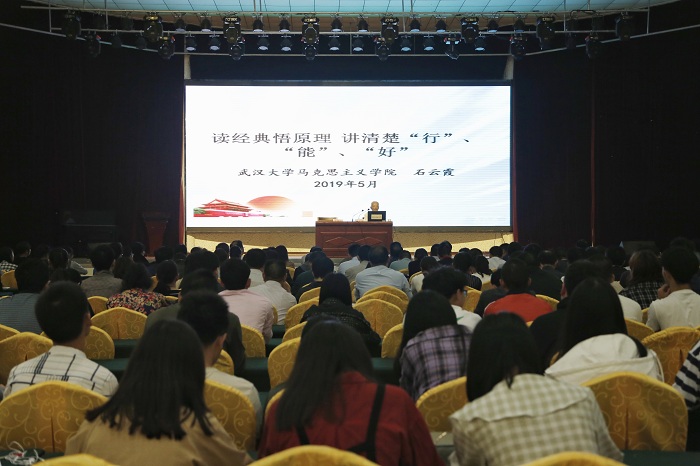 武汉大学马克思主义学院教授、博士生导师石云霞教授首先作了题为《读经典悟原理 讲清楚“行”“能”“好”》专题讲座。石教授从讲清楚“行”“能”“好”,关键在于坚持“八个统一”;“八个统一”最根本的是“要坚持理论性和实践性相统一”;习近平总书记的重要论述;“社会大课堂”中的几个理论和现实问题共四个方面,深刻回答了马克思主义为什么“行”、中国共产党为什么“能”、中国特色社会主义为什么“好”等问题,为师生们上了一堂内容丰富的思政课。