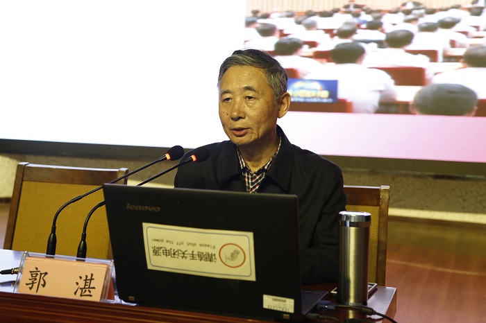 中国人民大学荣誉一级教授、哲学院博士生导师、全国模范教师郭湛教授作了题为《知天下大势 走自己道路——关注世界“百年未有之大变局”》专题讲座。郭教授以《三国演义》开篇:“话说天下大势,分久必合,合久必分。”为引言,指出必须知天下大势,才能坚定走好自己的路;并带领师生回顾了近百年世界重大事件,分析了世界百年巨变的历史特征,深入剖析了复兴的中国与美国的关系,最终提出要坚定不移走和平发展道路。