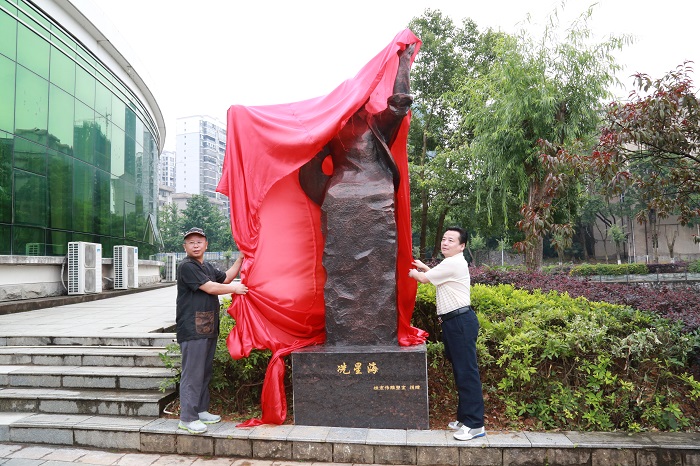 图2 校纪委书记余为民、桂宏伟大师为冼星海雕塑揭幕