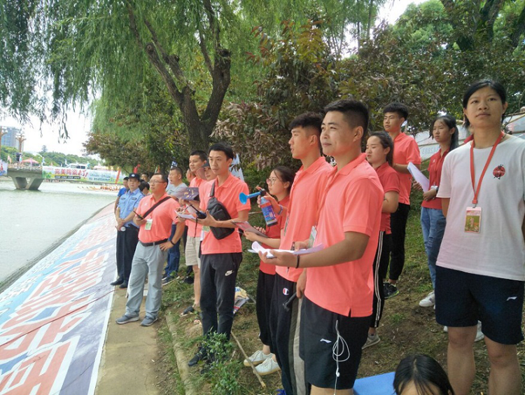 百舸争流号声穿云抒新中国70年豪情,万人助威锣鼓喧天写美咸宁20载华章。6日上午,值此端午佳节即将来临之际,由咸宁职业技术学院承办的2019“黄鹤楼酒·陈香杯”咸宁龙舟公开赛在市人民广场淦河段开赛,来自市内外32支参赛队相会香城、擂鼓挥桨、破浪争先。我校组织两支代表队参赛。咸宁市市委副书记、市长王远鹤宣布比赛开幕,校党委书记王继成、校长高焕清参加开幕式。