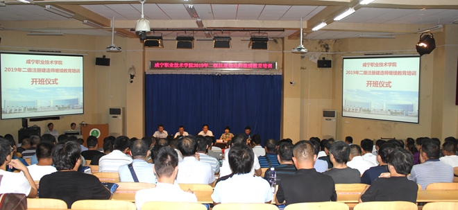 7月8日上午,作为湖北省住房和城乡建设厅执业资格注册中心遴选认定的咸宁市唯一的二级注册建造师继续教育培训机构,我校在教1201隆重举行2019年二级注册建造师继续教育培训开班仪式。我校副校长万齐元、咸宁市住房和城乡建设局副调研员刘娟、咸宁市建筑业协会会长钱定均、咸宁市建筑业协会副会长兼秘书长喻国祥等领导莅临此次开班仪式。会议由建筑学院院长曾学礼主持。
