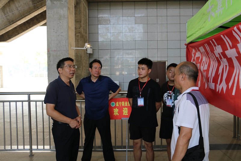 9月7日上午,校长高焕清、副校长万齐元带领院办、宣传部等部门工作人员,先后到咸宁南站、咸宁站、咸宁北站、温泉汽车站,慰问迎新接站工作的工作人员和志愿者,高校长详细了解了迎新接站的具体情况,向负责老师和志愿者表示慰问,并送上了慰问物品。