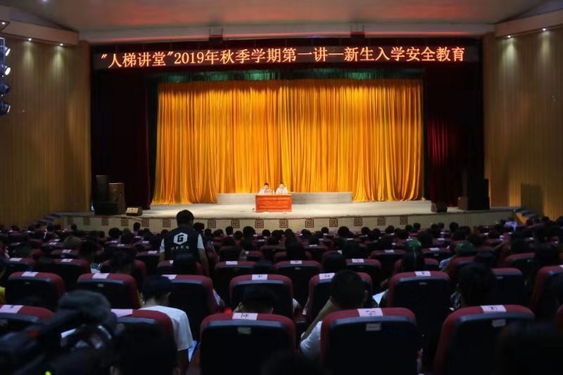 为使大学生尽快适应校园生活,提高自我保护意识。9月10日晚上学校在科学会堂举办2019年秋季学期“人梯讲堂”第一讲,专题为2019级新生举行了一次安全知识讲座。特邀咸宁市公安局刑侦大队4位警官作专题讲座。本次教育活动由学工处、保卫处牵头负责, 各学院认真组织1100余名新生代表参加。