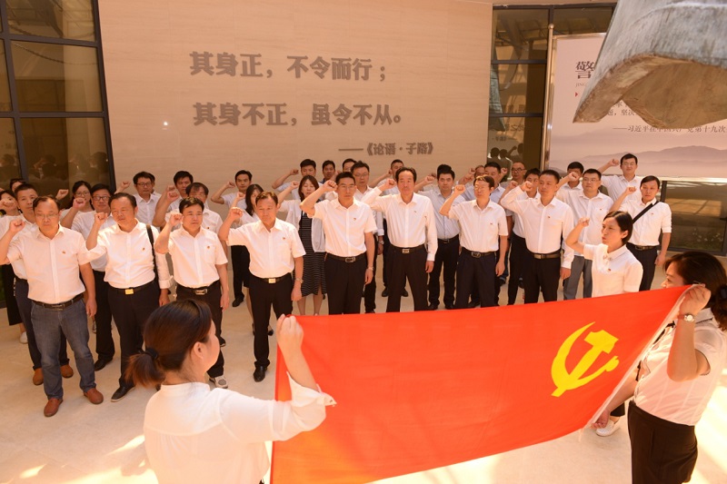 全体人员重温入党誓词、仔细阅读展板、参观实物、聆听讲解。校纪检监察室组织签订廉政承诺书,纪检监察室主任程星同志给全体人员讲了一堂生动的廉政警示教育微党课。