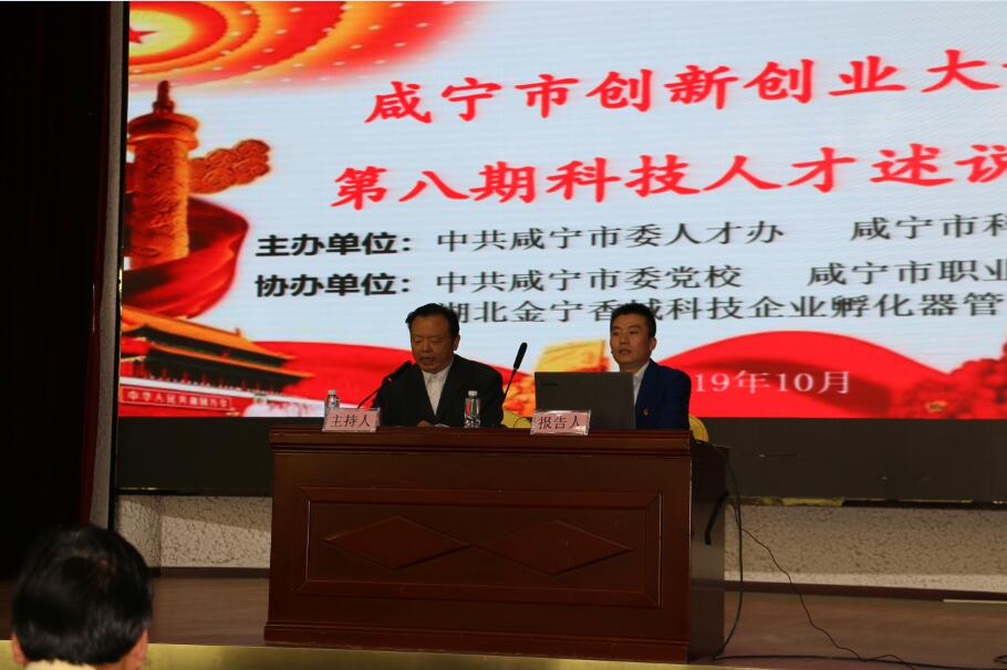 10月31日,由咸宁市委人才办、咸宁市科技局主办,咸宁职业技术学院承办的,咸宁市创新创业大讲堂暨科技人才述说活动第八期在我校大学生活动中心举行。咸宁市科技局副局长陈社会,咸宁职院副校长吴高岭教授、科技处处长万虎等出席本次活动,我校400余名师生参加活动,活动内容之一一一科技工作者报告会由吴高岭主持。