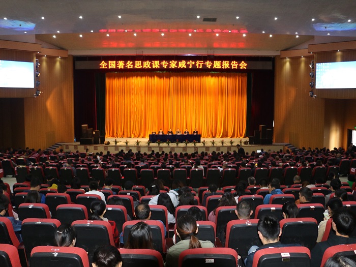 为了进一步深入学习贯彻习近平总书记3月18日在学校思想政治理论课教师座谈会上的重要讲话精神,推动我校思想政治工作改革创新,11月10日上午,我校开展“全国著名思政专家咸宁行”活动。全国著名思政专家刘同舫、卢黎歌、吴又存走进我校,为学校近1000名师生代表作报告。市委宣传部常务副部长王胜弘,我校党委书记王继成、校长高焕清等出席会议,会议由王继成主持。