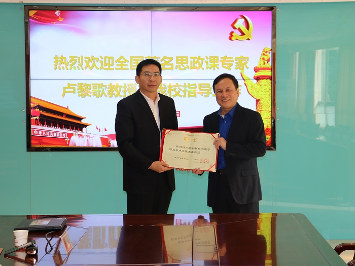校党委书记王继成出席会议,向卢黎歌教授表示感谢,并介绍了我校思政课改革创新的工作情况,校长高焕清为卢黎歌教授颁发聘书。