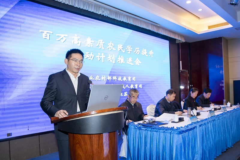 教育部职业教育与成人教育司谢俐副司长、农业农村部科技教育司廖西元司长在会上就全国百万高素质农民学历提升行动计划分别作了政策解读和工作部署。