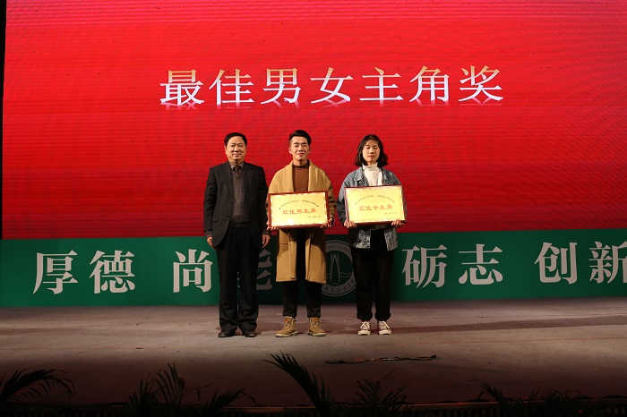 图4 校党委副书记龚光松颁发最佳男女演员奖