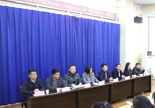 12月9日下午,我校2019级工程测量技术专业订单班——“晓雲科技班”开班仪式在教一201隆重举行。副校长方旭、教务处处长吴涛、合作交流处处长史小燕等学校领导,湖北晓雲科技有限公司总经理阚晓云、副总经理王伟立、范建峰等公司高管出席仪式大会。会议由建筑学院党总支书记黎八保主持,建筑学院院长曾学礼代表学校与公司签订了订单班联合培养协议。