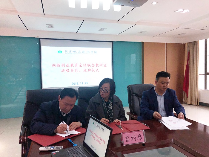 12月25日,2019年创新创业教育全球联合教研室主题教研活动(咸宁站)在我校举行。创新创业教育全球联合教研室轮值理事长周前进、常务副理事长兼秘书长明照凤、专职秘书长郭叶峰,学校党委书记王继成、副校长吴高岭出席活动,各二级学院院长、创业就业指导中心全体成员、创业学院骨干教师代表参加活动。王继成致欢迎辞并代表学院签署《创新创业教育全球联合教研室战略合作协议》。