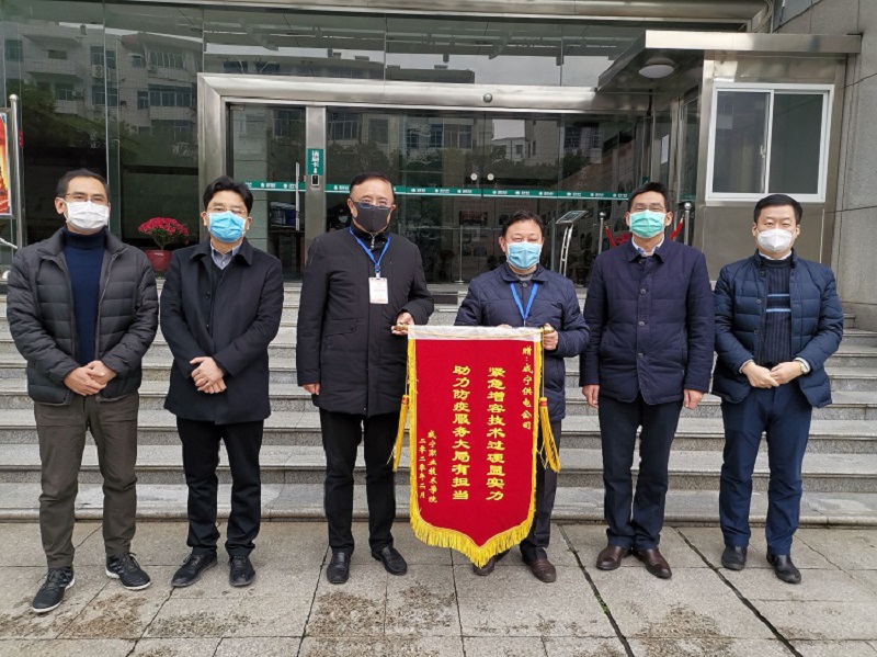 2月21日,党委书记王继成、校长高焕清代表学校向国网咸宁供电公司高新区供电中心送去锦旗,对其在疫情防控期间,助力我校疫情防控集中隔离场所正常供电一事表示感谢。