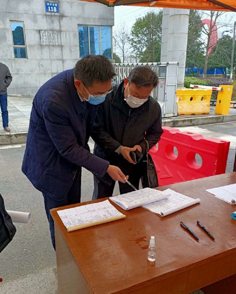 图1 党委书记王继成、校长高焕清检查校园出入登记情况