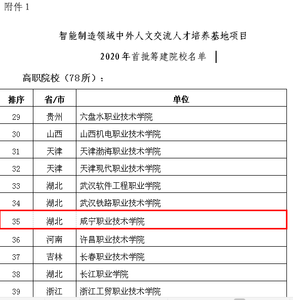 最近,教育部中外人文交流中心公布了《智能制造领域中外人文交流人才培养基地项目》筹建校名单,我校成功获批2020年该项目首批筹建合作院校。教育部中外人文交流中心在申报材料书面评审的基础上,综合考虑院校基础、建设方案及专家意见,最终遴选确定了两批共178所院校,188个项目。