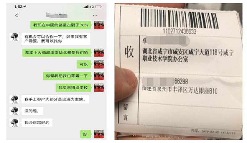 图2 文海波多方筹集1万只口罩