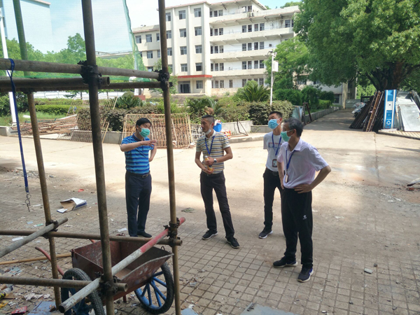 为全面贯彻学校关于“五一”期间安全稳定工作的部署,切实做好节日期间施工现场安全、防疫工作和稳定工作,确保现场各类突发事件能够及时、迅速、高效、有序地得到处理。真正把安全责任扛在肩上、抓在手中,体现在实际工作中,副校长周明生带领总务处、中专部相关人员先后到我校23栋学生公寓楼、武汉理工大学咸宁分院办公展示区域改造现场、艺术教育实训楼、中专部食堂等在建工地节日期间安全生产工作和防疫工作进行了突击检查。