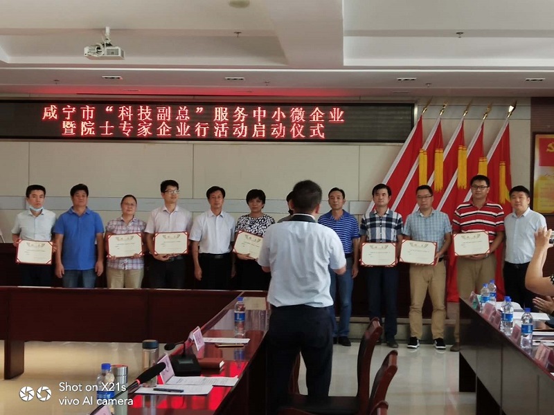 7月31日上午,在咸宁市人力资源和社会保障局三楼会议室,隆重举行了湖北省首批中小微企业“科技副总”和院士专家企业行活动。市委组织部常务副部长乐建舜,市经信局党组党组成员、副局长刘会川,市人社局党组成员、副局长廖白龙出席会议,各专家所在高校领导,院士专家4人及“科技副总”8人,12家企业的董事长或总经理等人参会。会议由廖白龙主持。