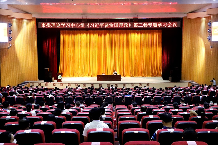 8月25日上午,市委书记孟祥伟主持召开市委理论学习中心组学习会,专题学习《习近平谈治国理政》第三卷。学习会在我校科学会堂举行。会议邀请省委宣讲团成员、武汉大学教授、博士生导师祝捷作专题讲座。