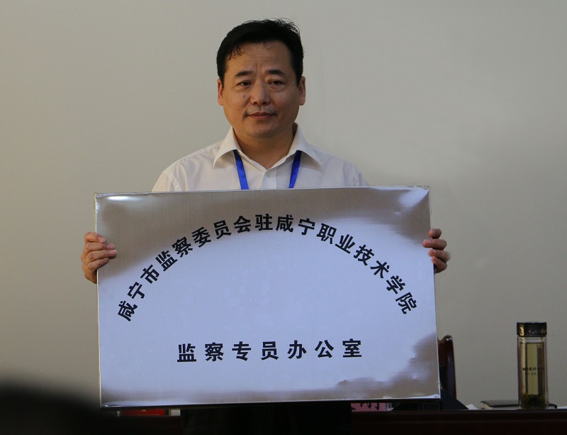 8月31日上午,市监察委员会驻咸宁职业技术学院监察专员办公室授牌仪式在我校行政楼举行,会议宣布,我校纪委书记余为民同志任市监察委员会驻咸宁职业技术学院监察专员。市委常委、市纪委书记、市监委主任朱庆刚,市纪委副书记、市监委副主任陈涛,市纪委监委组织部部长周祥明出席会议。授牌仪式由市纪委副书记陈涛主持。