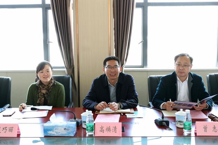 彭晓兰对高焕清一行到访表示热烈欢迎,对我校在乡村振兴人才培养、创新创业方面取得的成绩表示高度赞赏,并介绍了九江职业技术学院的历史沿革、办学特色、“十四五”规划编制、“双高”建设等情况。