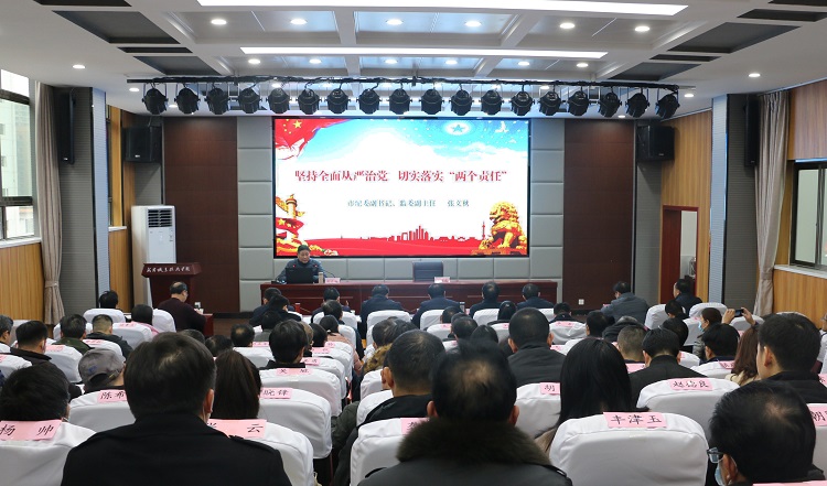 下午,张文秋以《坚持全面从严治党,切实落实“两个责任”》为题,从“正确把握党委(党组)运用监督执纪‘第一种形态’落实主体责任”“深刻领会加强同级监督是党内监督的重要方面”两个部分,精准地阐释了全面从严治党主体责任和监督责任。他指出,制度的生命力在于执行,各级党委和政府以及各级领导干部都要切实强化制度意识,带头维护制度权威,做制度执行的表率,带动全党全社会自觉尊崇制度、严格执行制度、坚决维护制度。他还表示,相信在学校党委的正确和坚强领导下,一定会推进从严治党向纵深发展,全面落实全面从严治党主体责任和监督责任,营造出风清气正的高校高质量发展政治生态。
