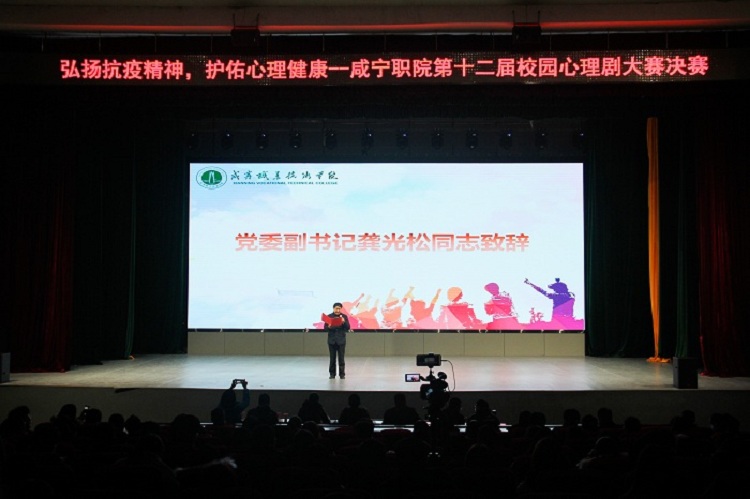 12月4日,由我校心理健康教育中心主办的“弘扬抗疫精神,护佑心理健康”第十二届校园心理剧大赛在科学会堂拉开帷幕。咸宁职业技术学院党委副书记龚光松出席了此次大赛,各学院分管学生工作副院长(副书记)、心理专干和全校各学院六百余名学生代表现场观看了本次比赛。
