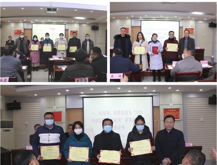 12月10日,我校召开2020年党风廉政建设工作推进会,传达学习了党中央、省纪委有关党风廉政建设方面的会议精神和领导讲话精神,全面总结了党风廉政宣教月工作情况,并对下一步相关工作进行部署。校党委书记王继成,纪委书记、监察专员余为民,党委委员、宣传部(统战部)长华先宙,党委委员、组织部(人事处)长曾志出席会议,校纪委委员、校属各单位党政负责人、“咸职廉洁好家风”获奖者参加会议。会议由余为民同志主持。