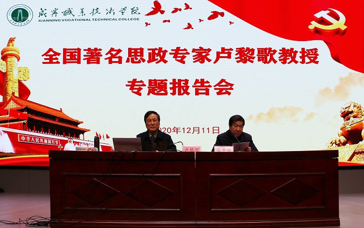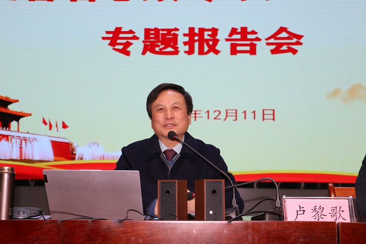 12月11日,在习近平总书记给西迁老教师回信三周年之际,我校邀请西安交大卢黎歌教授专程来我校作《弘扬西迁精神 建设教育强国》报告。我校党委副书记龚光松主持报告会并讲话,各二级院部党总支书记、学工副院长、学生科长、辅导员、马克思主义学院全体教师、学生代表等五百余名师生参加学习。