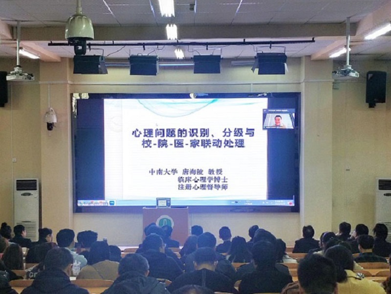 唐海波教授从学生心理问题的识别和重点关注学生的心理干预方法两个方面专业系统的讲授了如何依法依规、合情合理的做好学生心理危机的各项工作。参加讲座的老师们一致认为,唐教授的讲座实用性强,尤其是总结归纳学生心理问题的七种识别方法、七条识别线索、八个异常表现、三类重点关注学生的干预方法,听后受益匪浅。