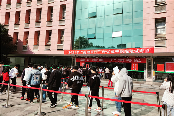4月29日,2021年单招考试在我校圆满结束。党委副书记、校长高焕清,党委委员、副校长万齐元,副校长方旭等校领导与咸宁市教育局巡视组一起对考点工作进行了巡查督导,我校考点秩序井然,各项工作规范有序。来自全省各地的500余名考生参加了本次考试。