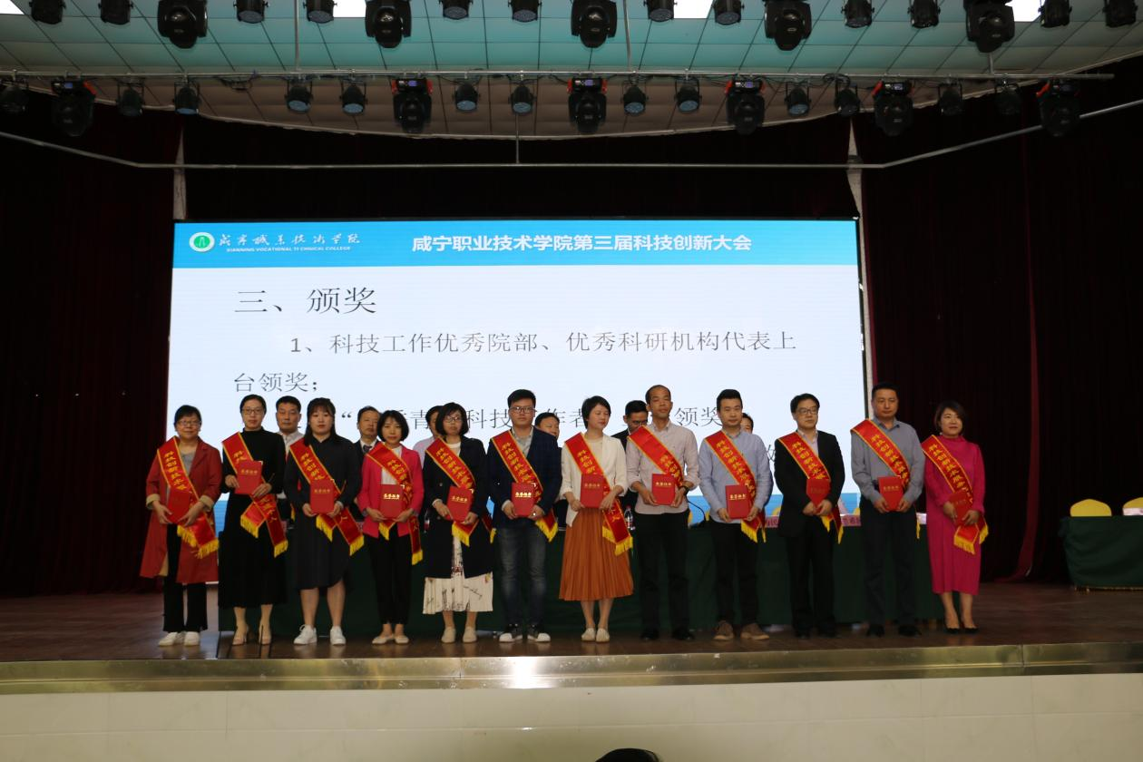王继成为优秀院部工学院、生物工程学院颁奖,高焕清为优秀科研机构咸宁市机械设备设计制造与表面处理工程技术研究中心负责人兰希园、咸宁市起重机运输机械优化设计与制造研究中心负责人徐文娟、咸宁市桂花苗木工程技术研究中心负责人王振启、咸宁市食用菌工程技术研究中心负责人王志勇、咸宁市茶叶安全质量工程技术研究中心负责人饶漾萍、咸宁市测绘工程技术研究中心负责人汪耀武颁奖,党委副书记龚光松、纪委书记余为民、副校长吴高岭为优秀青年科技工作者代表赫焕丽、谢承、方梅、陈凯、莫龙、余娟、谭小莉、孙连连、邢圣煜、解维娟、孙婷、黄俊峰颁奖。