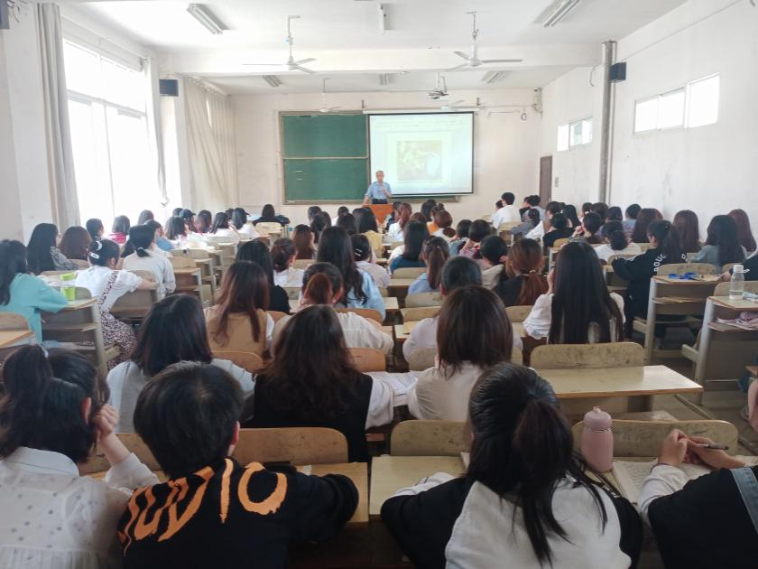 4月30日,余发海同志应邀再次来到咸宁职业技术学院,走进思政课堂,为人文艺术学院、会计学院的近300名学生讲革命故事。2021年4月4日,中央电视台以“十六年的寻找”为题播发了赤壁市退休警察余发海为革命烈士寻亲的感人事迹。十六年来,余发海同志的寻亲之路坚毅前行。余发海同志还有一条十年来持之以恒的育人之路。余老本次结合党史学习教育讲革命故事,对羊楼洞"142位烈士墓群"的来由作了介绍,通过讲142位烈士的革命故事讲到新中国的诞生来之不易。他对学生讲到:天地英雄气,千秋尚凛然。革命斗争和历史战争虽已离我们远去,但那些为了共产主义信念、为了建立新中国而不惜流血牺牲的英烈,将永远活在我们心中,永远是我们心中的丰碑。国泰民安衣食无忧的今天,我们更应传承好红色基因、切实做到居安思危,牢记人民共和国来之不易,坚毅为中华民族伟大复兴努力奋斗!连续两个教学班次的思政课精彩而深刻,教室几次响起热烈的掌声。马院院长胡顺教授、马院党务负责人龚斌安全程随堂听课。