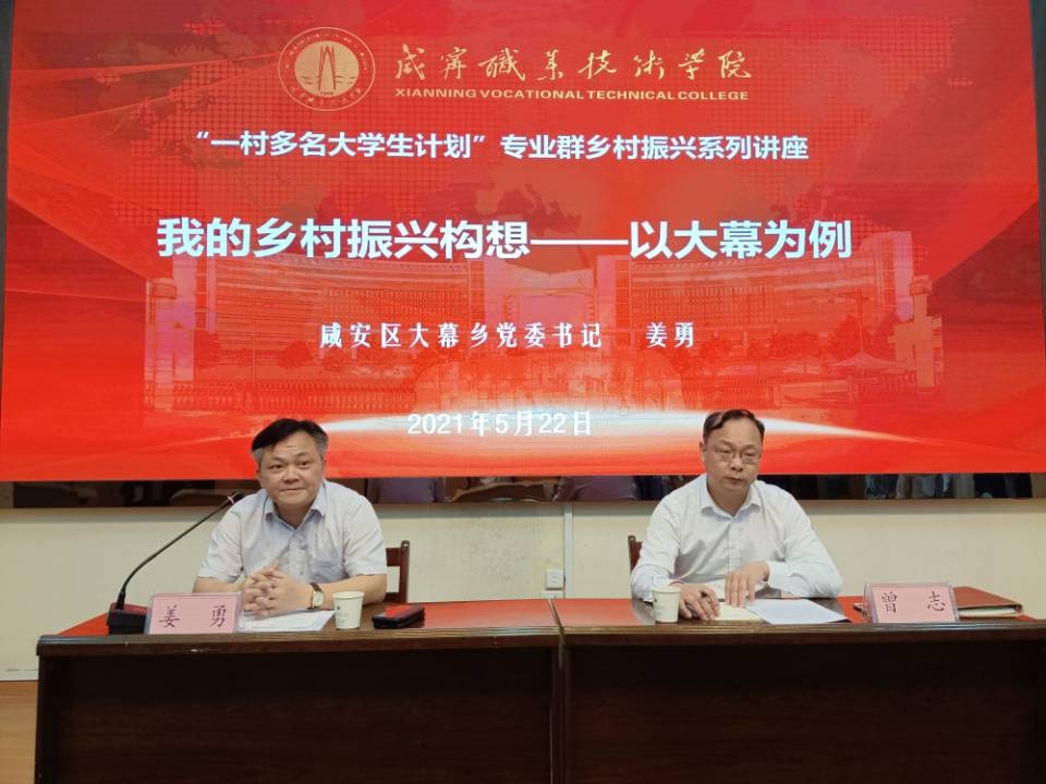 5月22日上午,咸安区大幕乡党委书记姜勇受邀莅临我校,为我校“一村多”学员以“我的乡村振兴构想——以大幕为例”为题作主题讲座。该讲座为我校乡村振兴学院主办的“一村多名大学生计划”专业群乡村振兴系列讲座之一。党委委员、组织部(人事处)长曾志,建筑学院、生物工程学院、商学院等学院负责人等参加会议。曾志主持会议。