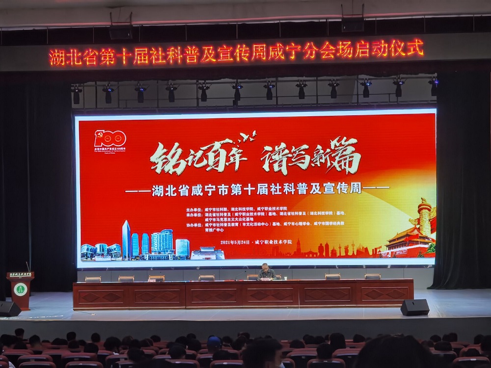 5月24日上午,湖北省第十届社科普及宣传周咸宁分会场启动仪式在我校隆重举行。咸宁市社科联主席张旺宝,党组成员、副主席吴学明,湖北科技学院科技处处长周燕红,党委委员、纪委书记、监察专员余为民,党委委员、副校长吴高岭等近700名师生参加启动仪式。科技处处长万虎主持。