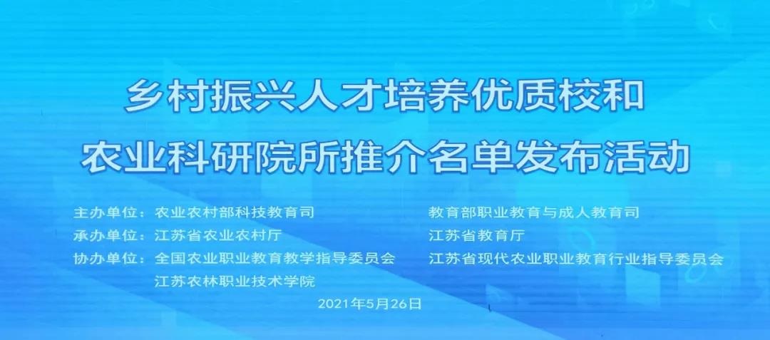 5月26日,农业农村部科技教育司、教育部职业教育与成人教育司在江苏联合推介了百所乡村振兴人才培养优质校和农业科研院所。此次入选全国乡村振兴人才培养优质校名单的高校包括16所本科、55所高职、27所中职、3所科研院所。农业农村部科技教育司副司长孙法军、教育部职业教育与成人教育司副司长谢俐出席推介活动并讲话,我校作为百所优质校代表受邀参加发布活动。