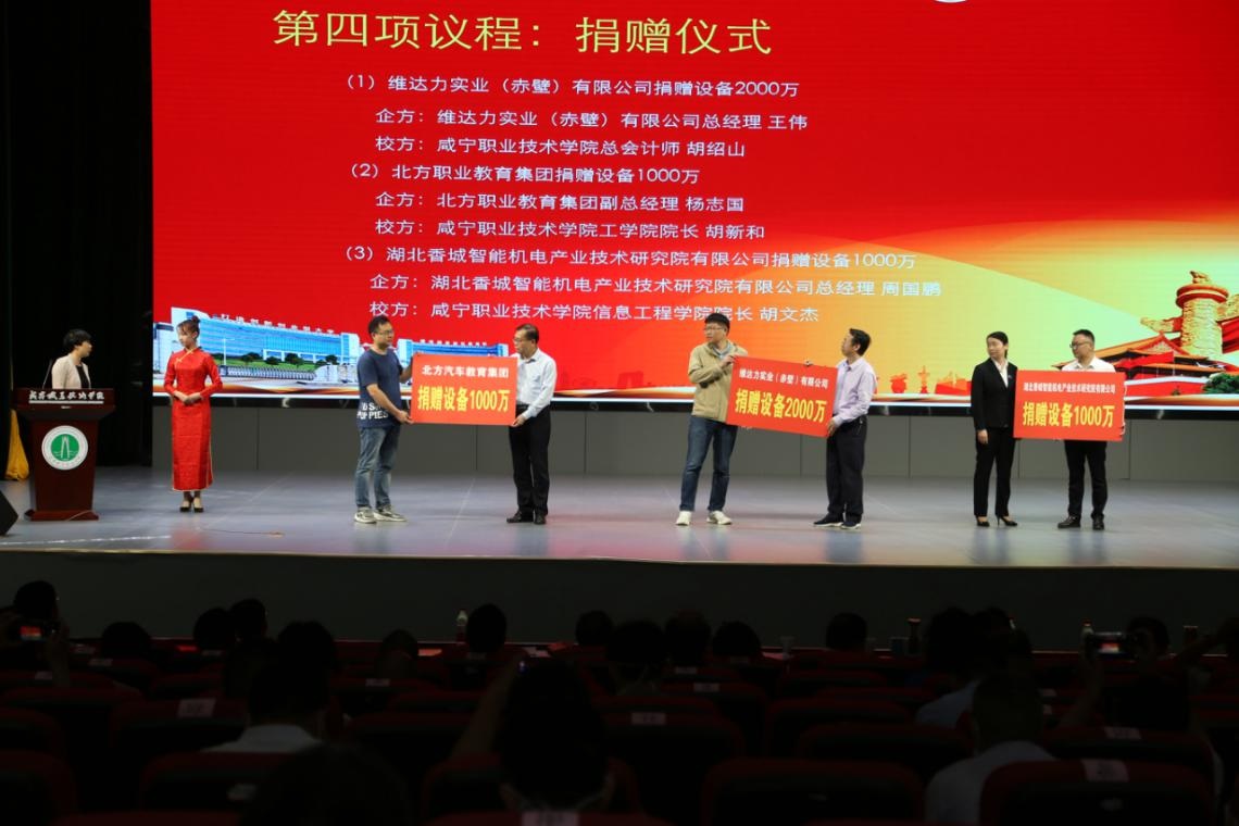 我校接受维达力实业(赤壁)有限公司、北方教育集团、湖北香城智能机电产业技术研究院有限公司捐赠的教学实训设备,并与14家合作单位签订协同创新和校外教学点协议。